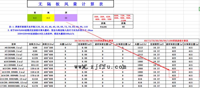 注:以上FFU高效過濾器的容塵量計算表出自廣州梓凈內(nèi)部技術參考,與其他廠家的標準可能存在小小出入。