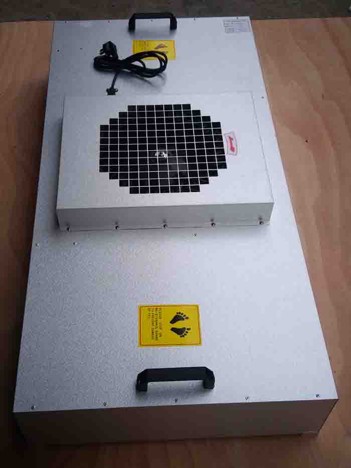 FFU設有初、高效兩級過濾網。風機從FFU頂部將空氣吸入并經初、高效過濾器過濾,過濾后的潔凈空氣在整個出風面以0.45M/S±20%的風速勻速送出。適用于在各種環境中獲得高級別的潔凈環境。它為不同尺寸大小,不同潔凈度等級的潔凈室、微環境提供高質量的潔凈空氣。在新建潔凈室、潔凈廠房式改造翻新中,即可提高潔凈度級別,降低噪音和振動,也可大大降低造價,安裝維護方便,是潔凈環境的理想部件。