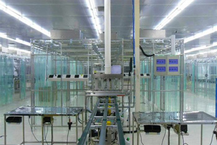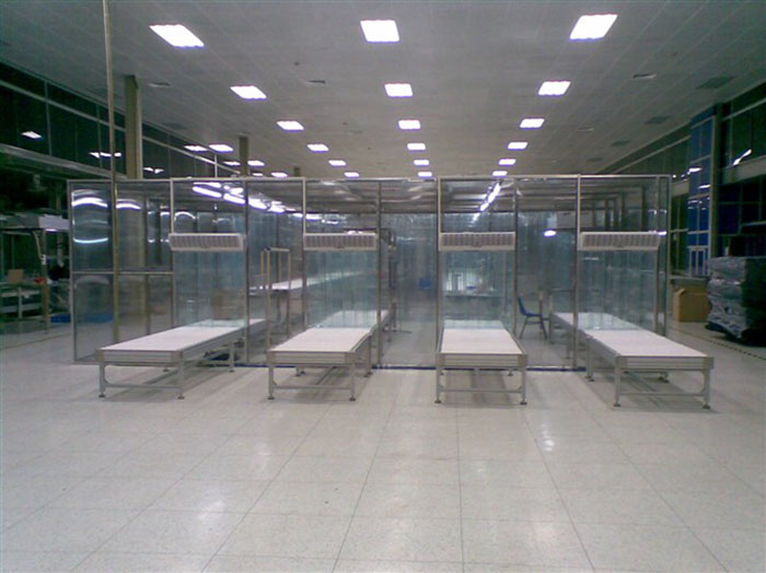 流水線潔凈棚又稱為生產線潔凈室或者組裝式凈化棚,水線生產無塵棚,潔凈組裝流水線生產潔凈棚,凈化風淋流水線,適用于在普通流水線作業過程中,局部工位有較高潔凈度要求的;流水線潔凈棚又稱為生產線潔凈室或者組裝式潔凈棚,水線生產無塵棚,潔凈組裝流水線生產潔凈棚,凈化風淋流水線如手機組裝、攝像頭組裝、貼膜等工藝環節;