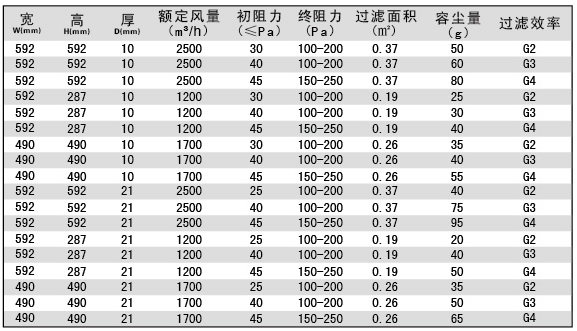 板式初效過(guò)濾器技術(shù)參數(shù)