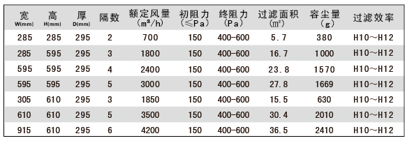 用戶選購指南-組合式亞高效過濾器技術(shù)參數(shù)