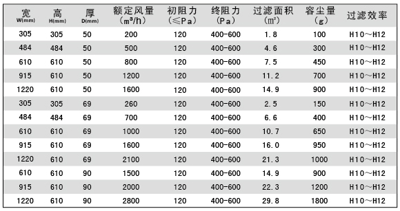 用戶選購指南-有隔板亞高效過濾器參數